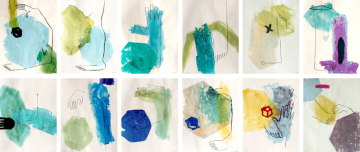 Este cuadro es un juego, a redescubrir el retrato sin mirada, donde la figura puede ser invasiva, neutra, sumisa o todo al mismo tiempo, y el dibujo vuelve a tomar la delantera, el color está por llegar.