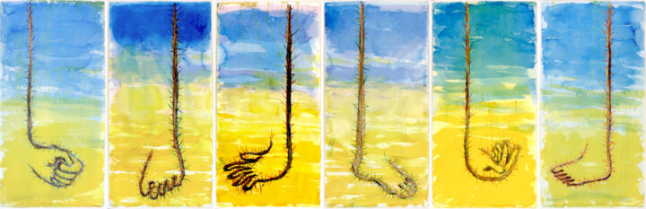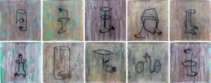 Este cuadro es un viaje atrás, de figuras hieráticas, una danza de contrastes más transparentes que mi sombra, a veces complementándose, otras veces se rechazan,